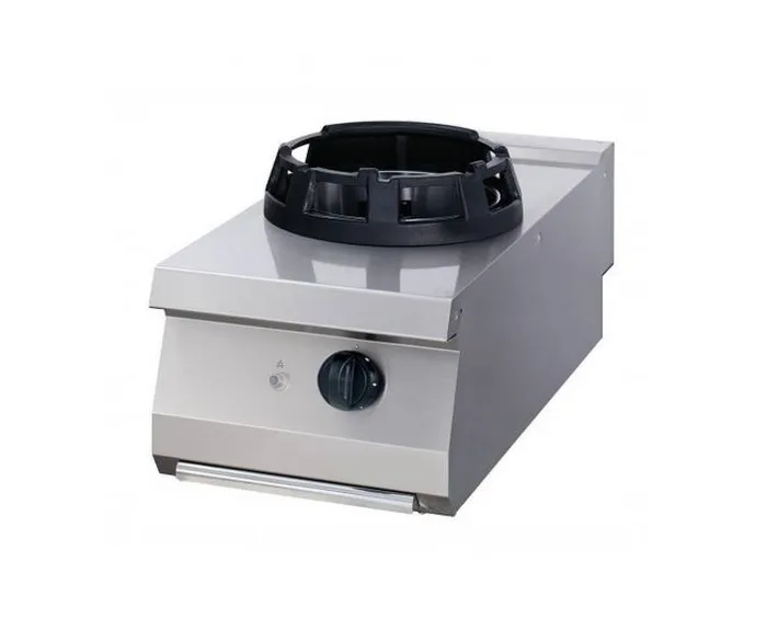 Wok- eller stir fry-tilberedning er en ideel måde at bevare ingrediensernes smag på. Med denne kraftige gas wok pande med enkeltbrænder tilberedes ingredienser som grøntsager, kød, fisk og kylling hurtigt, samtidig med at vitaminerne bevares. Den kraftige støbejernsbrænder og den holdbare pandering er velegnet til tunge belastninger. Støbejernsringens diameter er Ø28,5 cm. Denne wokbrænder har også en bred drypbakke, så du kan fortsætte madlavningen uden afbrydelser. Du kan placere denne professionelle wokbrænder i en madlavningslinje.